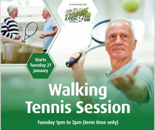 Walking Tennis is a new gentle, slower paced racket sport session launching at The Angel Centre, Tonbridge, starting Tuesday 27 January (term-time only).